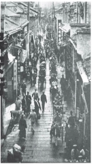 此外,满街是肩挑八根系(绳)的流动小贩,卖瓜籽、糖果、花生泡、蚕豆、豌豆,各种吆喝声此起彼伏。那高亢的“铲刀磨剪子哟——铲菜刀”、那低沉的“豆腐佬”、“打箍呵”、“豆浆呀”、“剃头呀”,彼此消长。最严肃的要算每天从二分局出来的巡警们,他们身穿黑制服,头戴宽边的黑帽,胸前挂着警笛,手里拿着短短的木制“哭丧棒”。他们的流动,对维持秩序、解决纠纷起了一些作用,但也不时对小商小贩进行一些欺诈,做一些鱼肉乡邻和百姓的事情。
