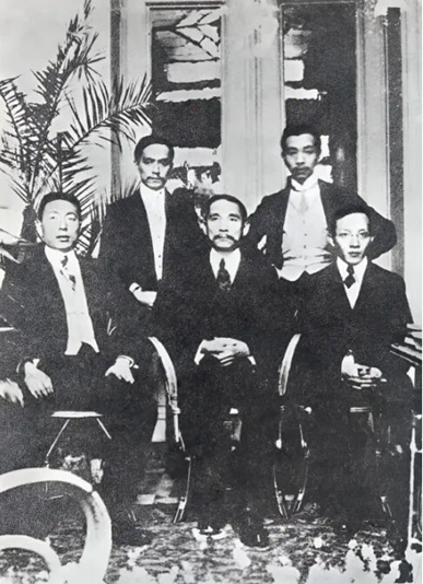 1905年春,石瑛(前排左一)在比利时留学时与孙中山(前排中)的合影
