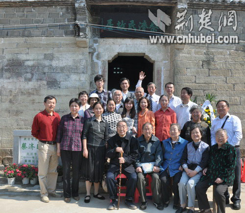裴高才(前排左一)与蔡礼鸿(后排举手者)等蔡济民后裔在蔡济民故居