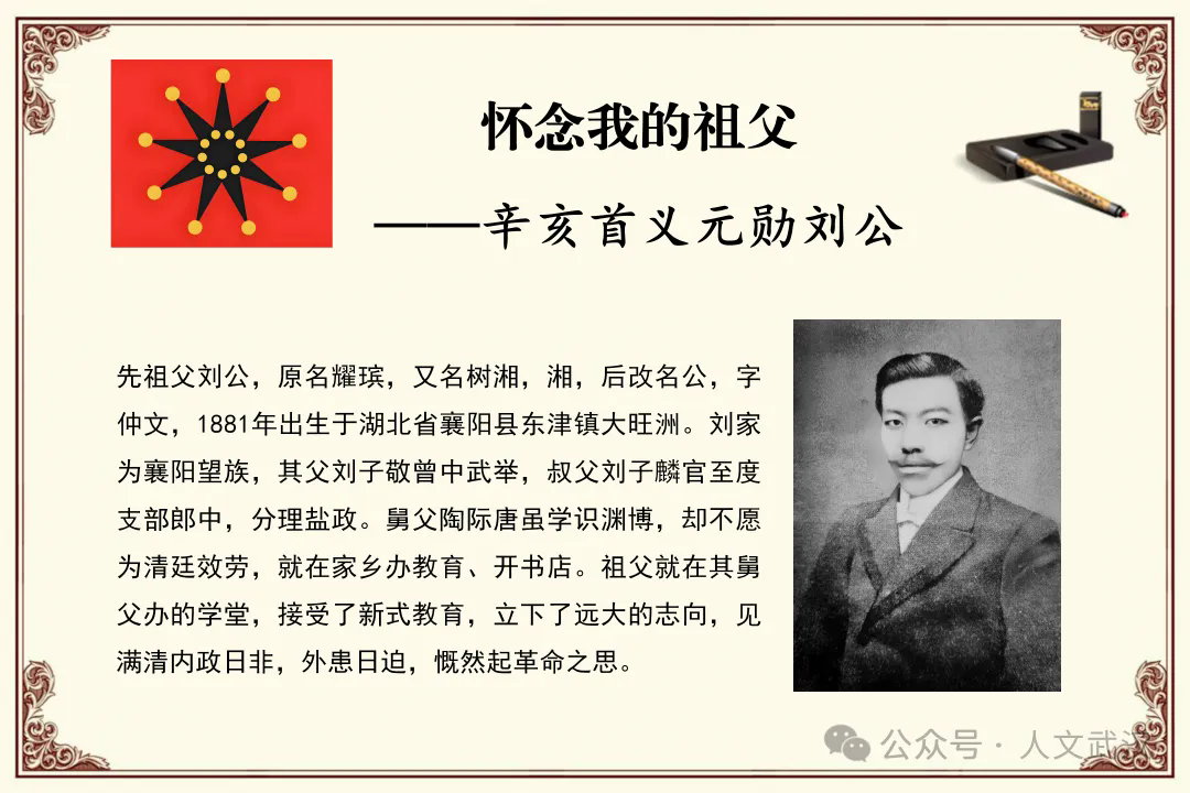 3月21日星期日是一个阳光明媚的好日子。人文武汉团队组织,在武昌红巷“江城印象”民俗博物馆辛亥革命志士后裔的系列讲座,由辛亥革命元勋刘公的孙女、武汉辛亥首义研究会首届会长刘重喜以《怀念我的祖父——辛亥首义元勋刘公》为题,讲述其爷爷刘公的生平事迹。