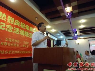 驻多米尼加商代处代表李东出席并讲话。他阐述了辛亥革命的伟大历史意义,介绍了国内建设和谐社会取得的一系列成就,对广大华侨爱国爱乡爱侨的热情表示肯定,并对各侨社在建设和谐侨社方面取得的成绩表示祝贺。