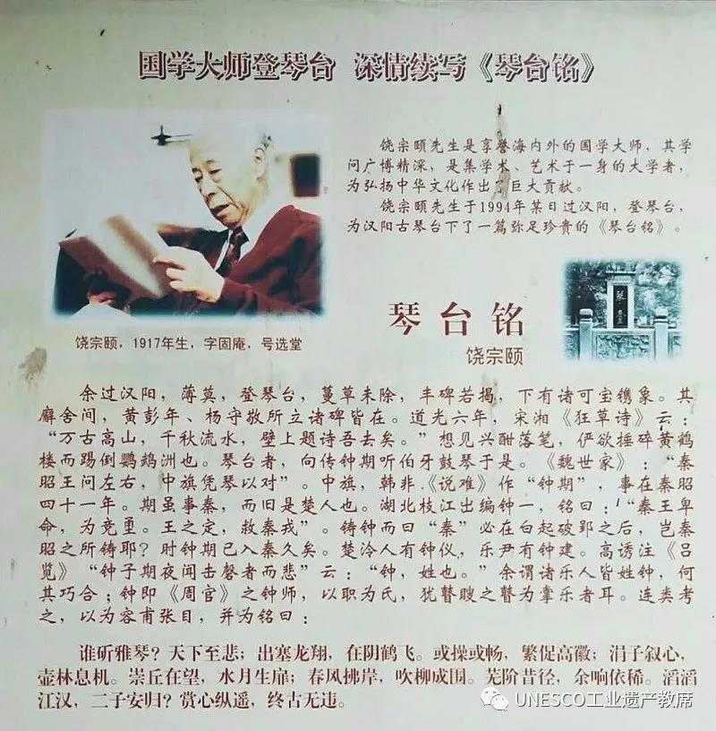 饶宗颐先生曾于1994年某日过汉阳,登琴台,写下了《琴台铭》。
