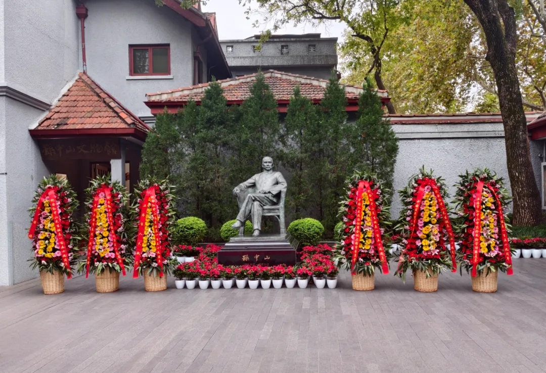 在孙中山故居庭院中央,摆放着上海市政府、市政协、中共上海市委统战部、民革上海市委会和中国福利会等敬献的花篮。市领导陈通、陈靖、徐毅松、解冬、肖贵玉与参加纪念活动的各界人士一道,在孙中山先生铜像前肃立并行三鞠躬礼。