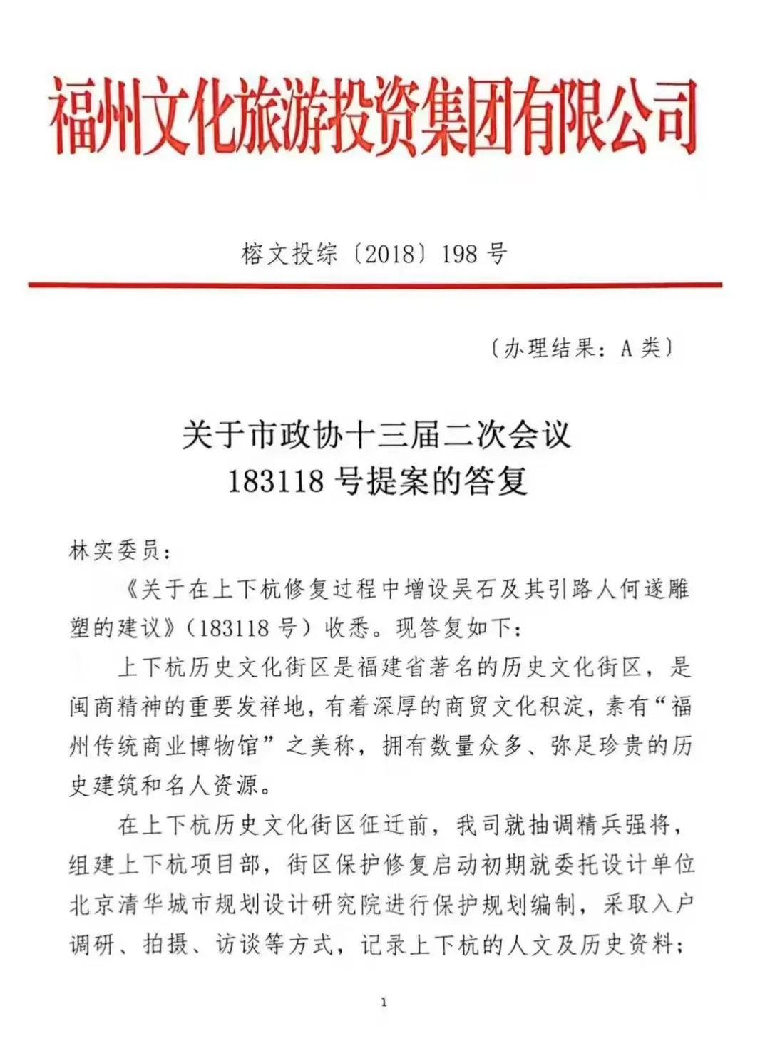 林实的提案获得当地政府主管部门的积极响应,复函说:“我司已组织专人多次在街区进行择址调研,按照历史轨迹信息及街区实际情况,拟选址潭尾街附近增设雕塑,计划结合潭尾街、隆平路路段沿线院落修复的进程,重建吴石及其引路人何遂雕塑;并计划在今后的旅游线路上开辟一条红色文化旅游专线,以弘扬爱国主义精神,传递革命正能量,提升街区红色文化内涵。” 规划的地点,就是何遂《辛亥革命回忆录》中所提到的日本洋行与潭尾街拐角处。
