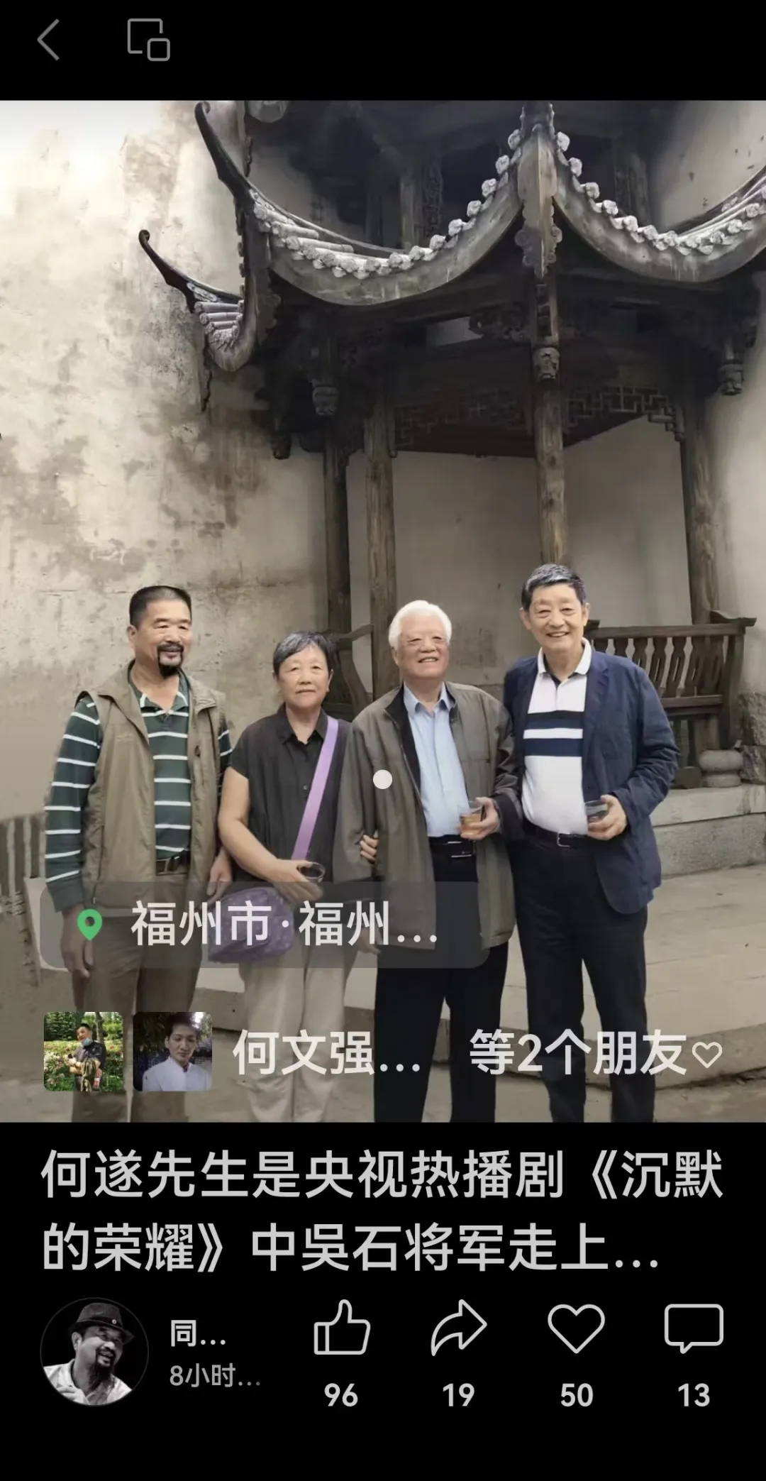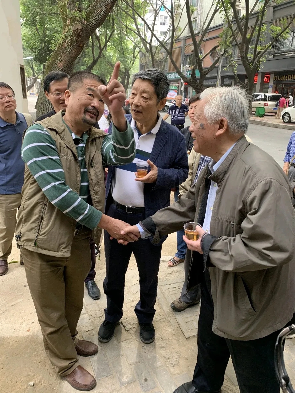 右起:林实,何丹,何代宁,何明章,2018年参观上下杭旅游区工地 在台江区任副区长的何遂将军后人林实在政协会议上首先提出:在上下杭旅游区建设规划中选择一个合适的地点建一座亭,用以纪念何遂将军当年主持的福州护法运动,弘扬革命精神。