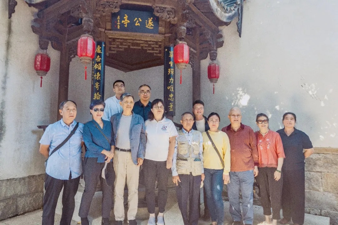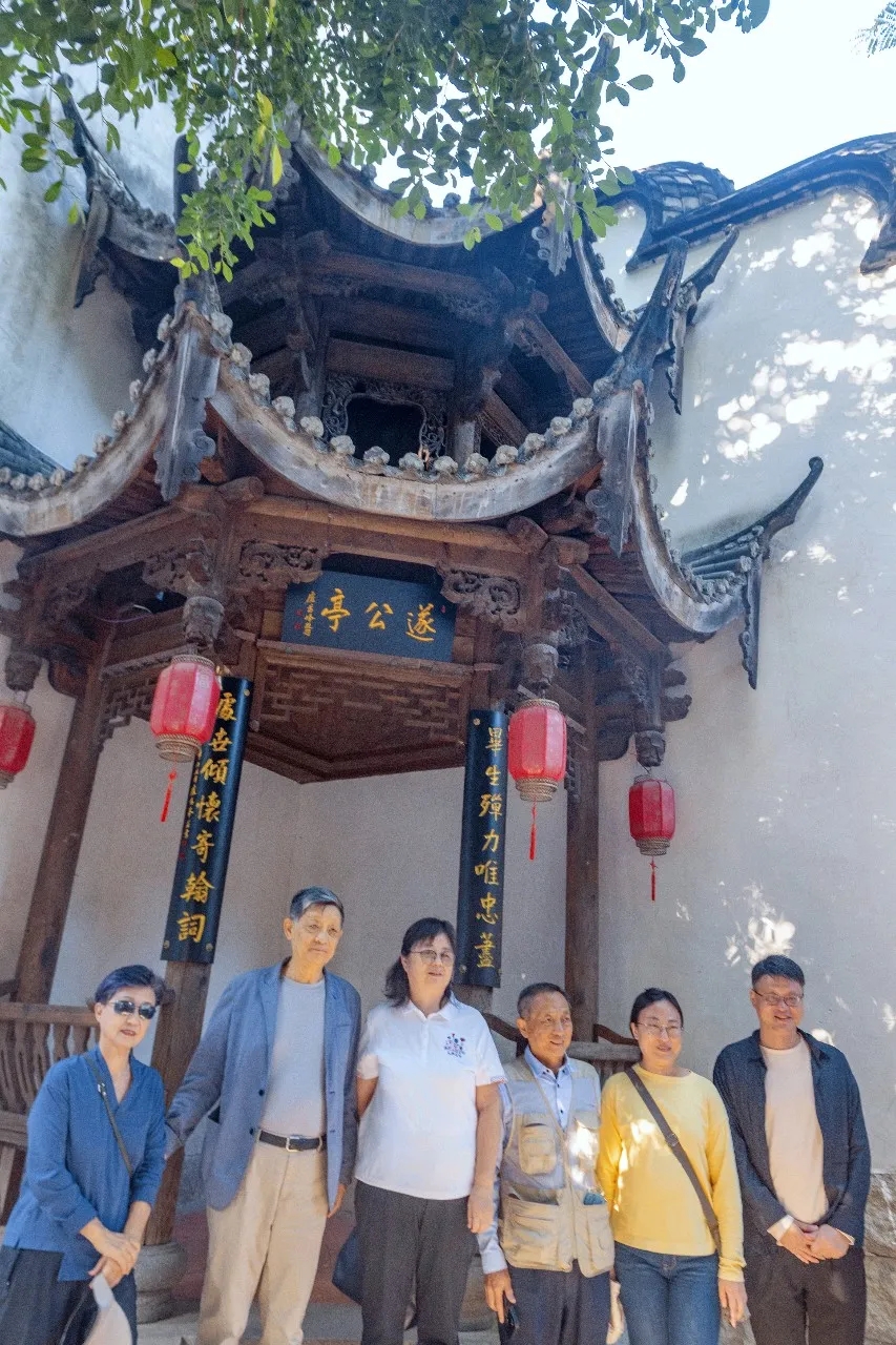 前排右一:福州晚报副总编刘琳,前排左二起:王苗,何迪,吴红,何巍,何欣,后排左二起:郑立,林实 三山人文历史纪念园仪式结束后,所有嘉宾移师上下杭旅游区,为新命名的“遂公亭”剪彩。自此,上下杭旅游区增加了一个游客打卡的新名胜。