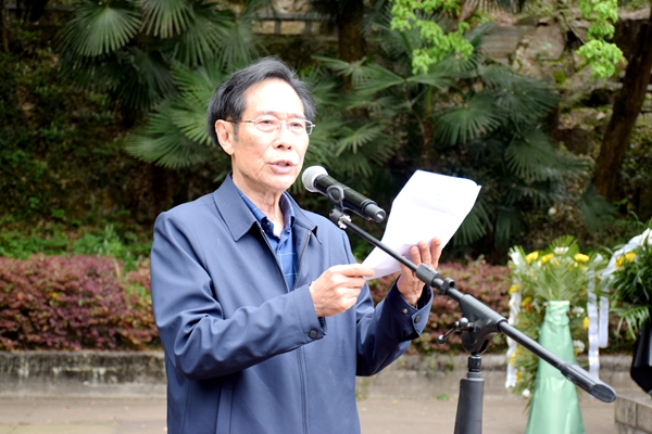 熊永铸先生致辞(摄影:何蒙) 中共武汉辛亥首义研究会党支部书记熊永铸表示,此次活动紧扣中心有大局,时间契合有意义,内容丰富有创意。辛亥革命在中华民族振兴和中国社会发展进程中建立的丰功伟绩,彪炳史册、光照千秋,值得我们永远纪念。2019年武汉辛亥首义研究会和辛亥革命网在武汉市文旅局和辛亥革命博物院的大力支持下,拍摄了六集人文历史专题纪录片《英雄之城——辛亥武昌首义十八景》,对武昌首义的人文历史进行了全景式呈现。希望这部纪录片能在推进和宣传“一桥两山”的重大文旅项目中作一点微薄的贡献。清明节是中华民族慎终追远的传统节日,铭记历史,缅怀先烈,启迪未来。仁人志士的英雄事迹,人民不会忘记,历史不会忘记,他们的理想信念与意志品质,必将激励两岸同胞为祖日早日完成祖国的统一大业,实现中华民族伟大复兴而不懈奋斗。