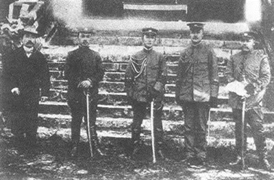 云南护国军将领合影。左起:李曰垓、罗佩金、蔡锷、殷承环、李烈钧