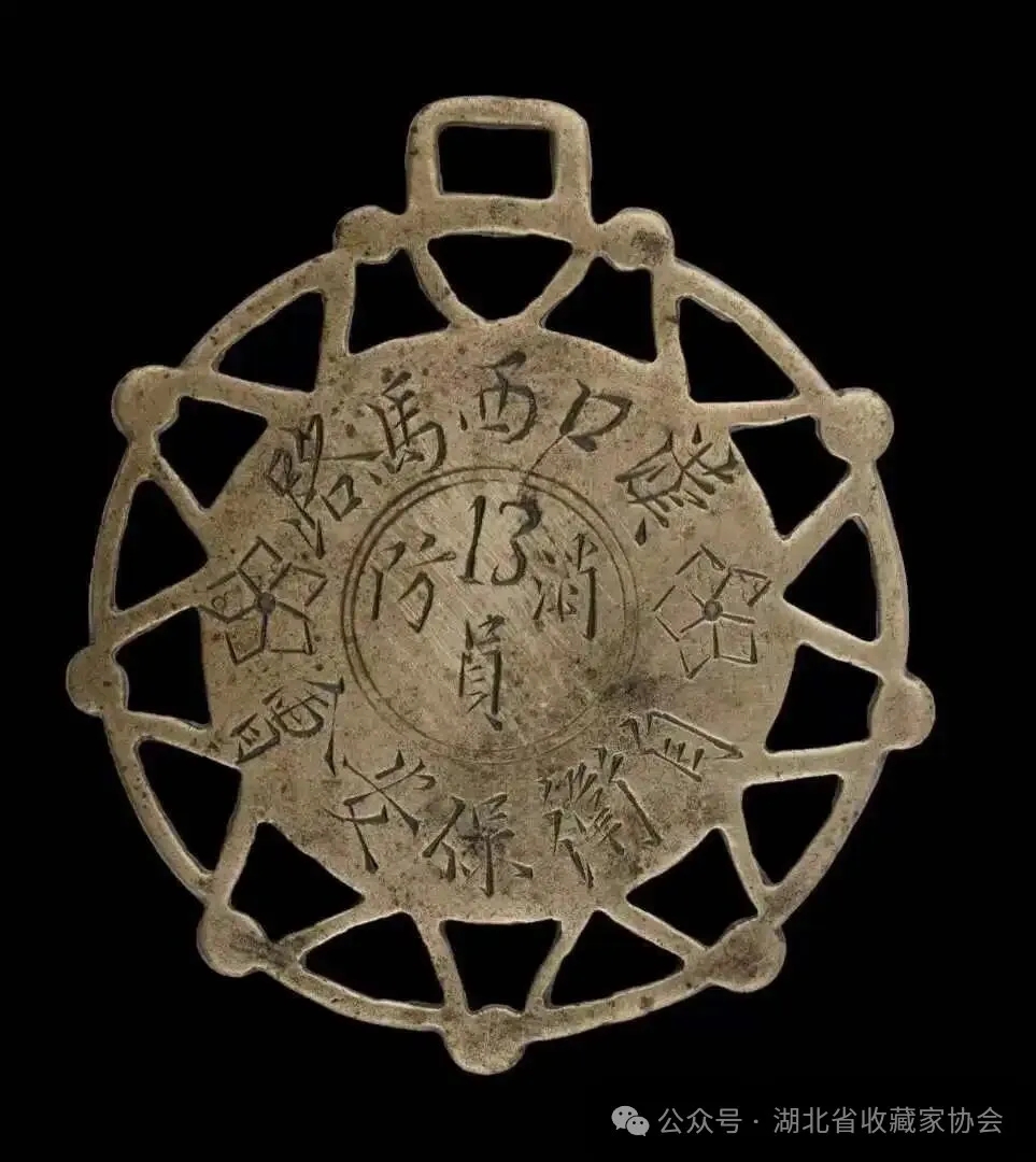 清乾隆《汉阳府志》称汉口:“人烟数十里,行户数千家,典铺数十座,船泊数千万,九州诸大各镇皆有让焉。”近代的汉口,由于工业的进步和商业的发达,使得人口密集和房屋的密度都很大,真可谓是“后市前街屋似鳞”。因此,稍不小心,就容易引发火灾,并且一烧便是一大片,“火灾已成恒事”。 汉口地区在清代救火基本上是靠民众自救。因而为了在火灾发生时便于担水救火,在修盖房屋的时候,便会特意地留下一条“火路”。 在清嘉庆年间,汉口地区官府率绅商集资购置了“水龙”(手摇水车),由善堂置办“水龙局”。至光绪二十八年(1902年),三镇已有“水龙局”28个。同时,三镇各善堂又筹办“笆斗会”,遇有火灾发生,邻里百姓便以“笆斗”(用柳条编成的容器)取水灭火,使“水龙局”得到新的发展。 至清晚期,在汉口黄陂街、四官殿、花楼街、大夹街、沈家庙一带的银钱业、绸缎业、百货业等商民仿效上海救火会章程,在各地段相继成立了民间救火组织——保安会。各保安会按各地段的名称命名,并规定每家派出一名义务救火员,自愿参加,不计报酬,一旦发生火患无论远近都赶赴火场集中救火。所需救火设备、费用由各地段保安会向富商及店铺、行栈募集。 这枚汉口西马路自卫保安会消防员的证章正是记录的这一时期的历史。(图一)
