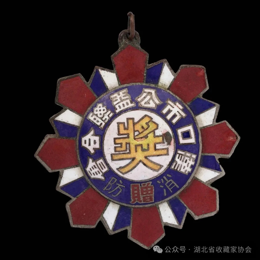在汉口义勇消防总部,还辟有“义士享堂”,专祠纪念为救火而牺牲的义勇消防队员。1935年,在第十四届消防义士纪念节之际,有千余人齐聚中山公园,举行了盛大的义勇消防队伍大检阅。当天,728名义勇消防人员身着铜盔白甲,22架汽龙红狮一般首尾相衔。游行的队伍从中山公园出发,经过老圃、江汉路等,最终进到长堤街,到义士享堂祭奠历届捐躯义士后才散去。 1937年,汉口公益联合会设“义勇消防总队部”。不久,并入汉口市警察局消防警察队,称消防总队。 这枚汉口市公益联合会消防奖章记录的就是这段历史!(图三)